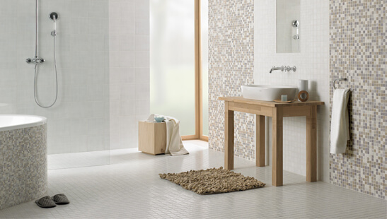 Mit Mosaiken lassen sich Fliesenwände und Böden verschönern und individualisieren. Mosaike gibt es in allen Farben und auch in besonderen Oberflächen mit Metallic-Effekt, aus Naturstein oder aus Glas.